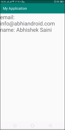 <?xml version="1.0" encoding="utf-8"?> <LinearLayout xmlns:android="http://schemas.android.com/apk/res/android" xmlns:app="http://schemas.android.com/apk/res-auto" xmlns:tools="http://schemas.android.com/tools" android:layout_width="match_parent" android:gravity="center" android:layout_height="match_parent" tools:context=".MainActivity"> <TextView android:id="@+id/text" android:textSize="30sp" android:layout_width="match_parent" android:layout_height="match_parent" /> </LinearLayout>