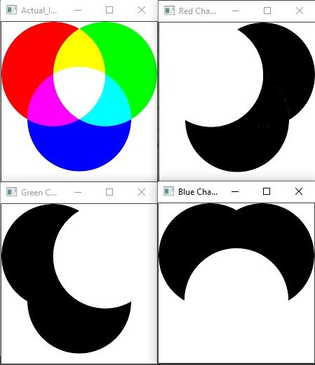 Mat b = different_Channels[0];//loading blue channels// Mat g = different_Channels[1];//loading green channels// Mat r = different_Channels[2];//loading red channels//
