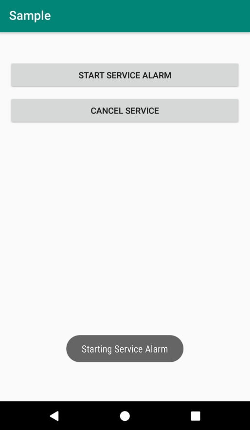 <?xml version="1.0" encoding="utf-8"?> <LinearLayout xmlns:android="http://schemas.android.com/apk/res/android" android:id="@+id/activity_main" android:layout_width="match_parent" android:layout_height="match_parent" android:padding="16sp" android:orientation="vertical" android:gravity="center_horizontal"> <Button android:layout_width="match_parent" android:layout_height="wrap_content" android:id="@+id/btnStartService" android:text="Start Service Alarm" android:layout_marginTop="30dp"/> <Button android:id="@+id/btnStopService" android:layout_width="match_parent" android:layout_height="wrap_content" android:layout_marginTop="10dp" android:text="Cancel Service"/> </LinearLayout>