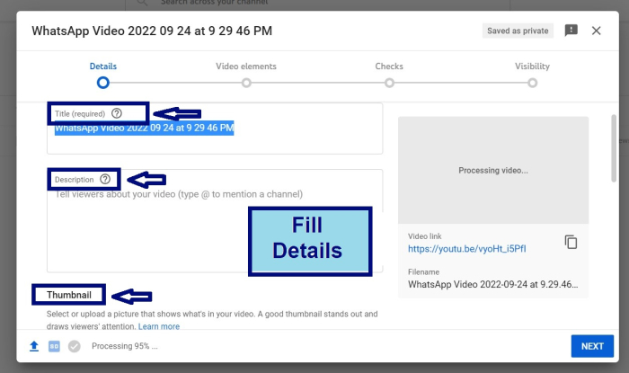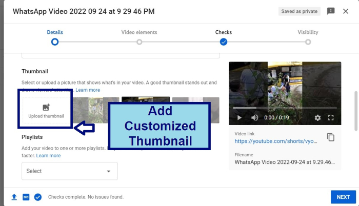 步驟4 - 為您的影片提供一個好的劇集標題、描述和自定義縮圖。在內容中新增標籤、字幕和結束卡。