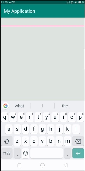 在上面的輸出中,它沒有顯示鍵盤,這意味著EditText沒有獲取焦點。現在點選EditText,它將顯示鍵盤,如下所示 -