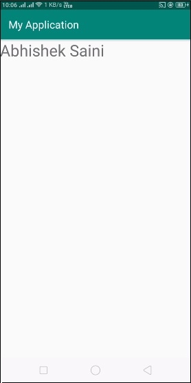 <?xml version="1.0" encoding="utf-8"?> <LinearLayout xmlns:android="http://schemas.android.com/apk/res/android" xmlns:app="http://schemas.android.com/apk/res-auto" xmlns:tools="http://schemas.android.com/tools" android:layout_width="match_parent" android:gravity="center" android:layout_height="match_parent" tools:context=".MainActivity"> <TextView android:id="@+id/text" android:textSize="30sp" android:layout_width="match_parent" android:layout_height="match_parent" /> </LinearLayout>