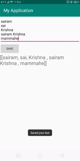 Toast.makeText(MainActivity.this, "Saved your text", Toast.LENGTH_LONG).show();