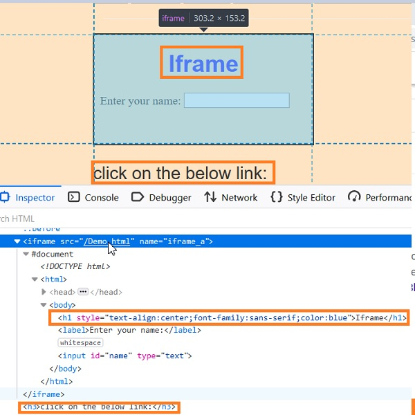 讓我們識別位於框架中的文字 Iframe,以及文字單擊下面的連結,而文字位於框架外。
