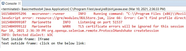 最後,我們再次可以使用 switchTo().defaultContent() 方法將控制切換到主頁。框架在 html 程式碼中由標籤名(frame、iframe 或 frameset)標識。