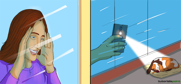還有一種方法可以發現它是否為單向反射,包括其工作原理。單向反射會反射一部分光線,以便部分光線可以進入。因此,這種反射也會反射另一側的光線,並讓一部分光線透過。