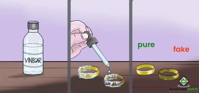 那麼您擁有的就是一件正宗的黃金製品。如果金屬與醋發生反應,您會看到一些變色,這證明黃金不純。
