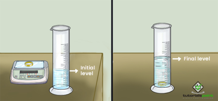 要找到黃金的密度,首先使用秤測量其克重量。記下重量。接下來,將容器裝滿水並記錄初始液位。然後將黃金製品緩慢放入容器中並記錄最終液位。從最終液位中減去初始液位,即可得出黃金置換的水的體積。將置換的水的體積除以克重量即可得到黃金的密度。