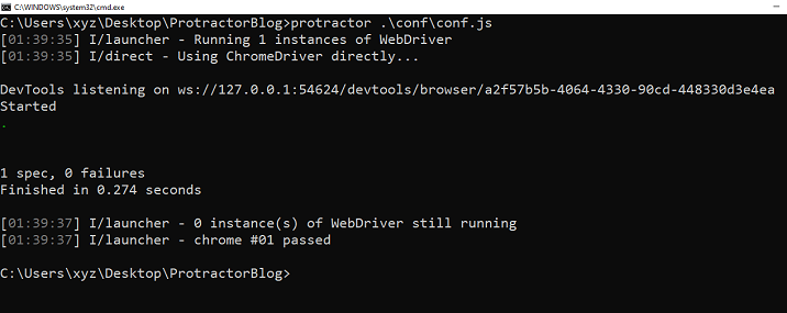 此test.js檔案測試網頁上ID為'myDiv'的特定元素的class屬性是否包含字串'Web'。此外,它在載入網頁之前停用AngularJS同步,以確保可以正確測試頁面上任何非Angular元素。