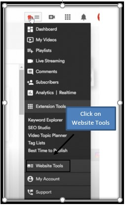 步驟 3 - 將 Tubebuddy Chrome 擴充套件程式新增到你的 YouTube 頻道。點選 TubeBuddy Chrome 擴充套件程式。將出現一個下拉選單,在下拉選單中,點選網站工具。