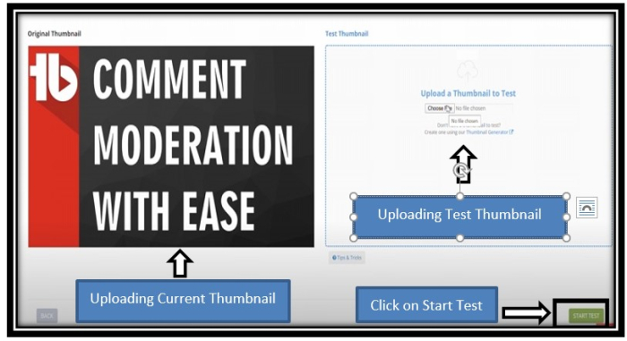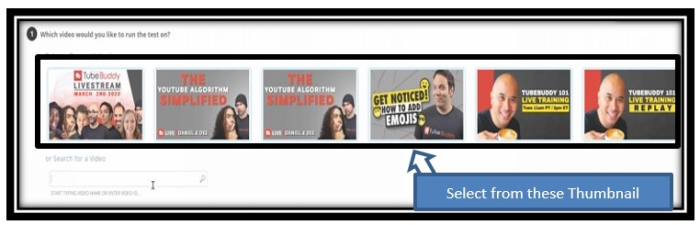 步驟 6 - 要執行 A/B 測試,你需要選擇影片的縮圖或只需輸入 YouTube URL,TubeBuddy 軟體會自動獲取縮圖。
