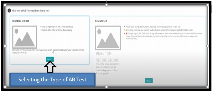 步驟 7 - 選擇縮圖後,你需要選擇要執行的 A/B 測試型別 - 可以是縮圖點選率測試或元資料測試。
