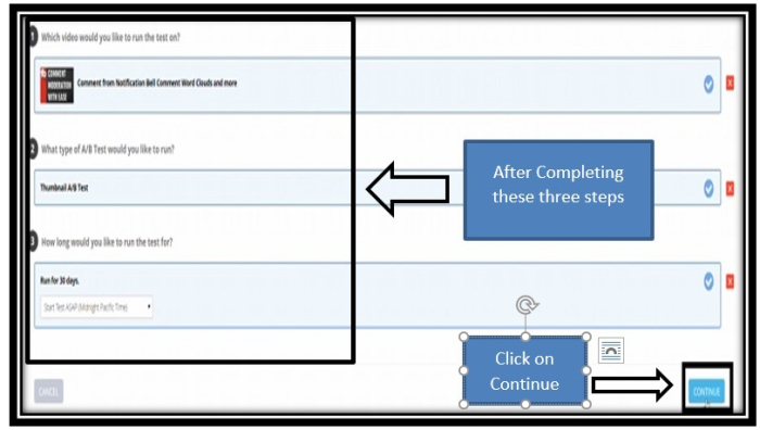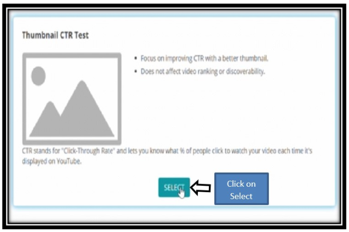 步驟 8 - 我個人建議你選擇縮圖點選率測試。此測試可以讓你知道每次影片顯示在 YouTube 上時,有多少人點選觀看你的影片。點選選擇按鈕。