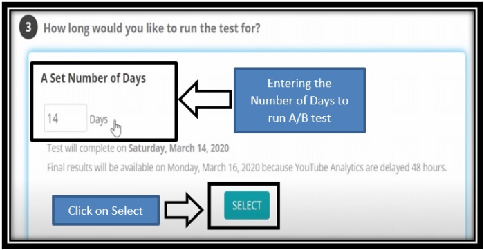 步驟 9 - 設定執行 A/B 測試的天數,但預設天數為 14 天,然後點選選擇按鈕。