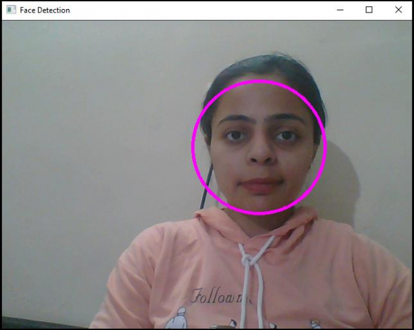 我們將學習如何使用 OpenCV 即時跟蹤人臉。此程式與之前的程式相同,不同之處在於我們使用橢圓形而不是矩形來識別面部,我們還使用額外的“cout”語句在控制檯視窗中顯示面部的座標。