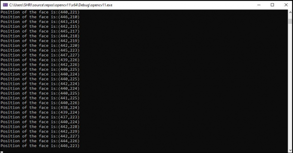 cout << "Position of the face is:" << "(" << horizontal << "," << vertical << ")" << endl;