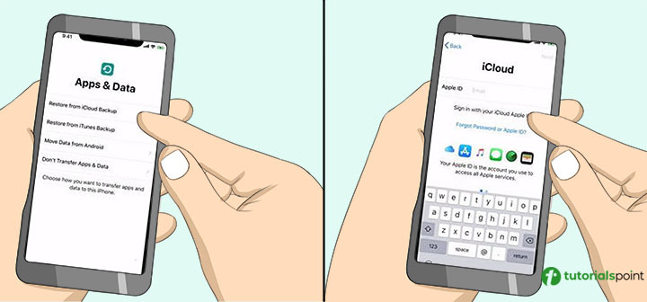 在“應用程式和資料”螢幕上,選擇“從 iCloud 備份恢復”。