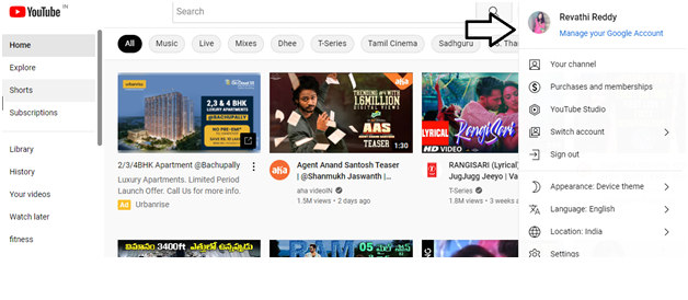 - 步驟 1 − 前往 Youtube.com 網站並登入您的帳戶。點選個人資料圖示。將出現一個下拉選單。