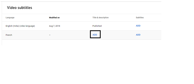 - 步驟 20 − 在頻道字幕頁面,在語言部分下,您會發現您的影片已釋出為兩種語言 - 英語和法語。印度人可以使用英語檢視標題和描述,而法國人可以使用法語(在其國家/地區)檢視標題和描述。