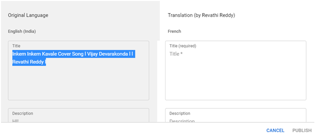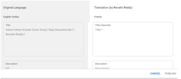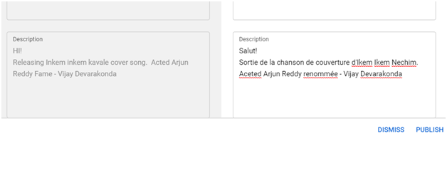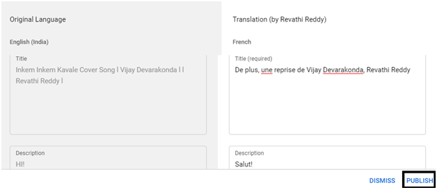 - 步驟 19 − 一旦標題和描述已新增翻譯後的語言(根據您的選擇)。點選釋出按鈕。