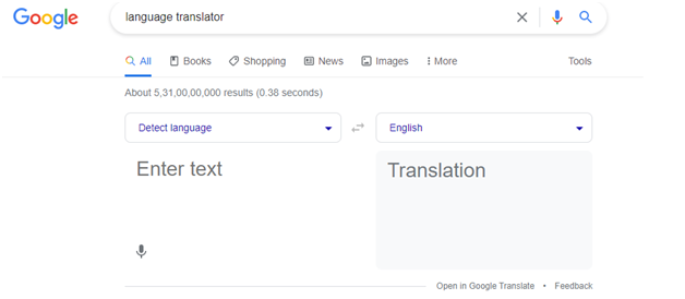 - 步驟 12 − 前往 google.com 網站,輸入語言翻譯器並點選搜尋按鈕。您將看到一個語言翻譯器工具(如下所示)