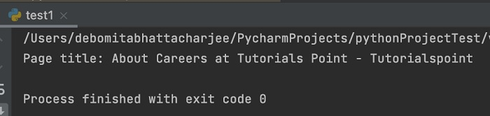 讓我們在無頭模式下啟動頁面 - 關於 Tutorials Point 中的職業 - Tutorialspoint 來獲取標題 -。