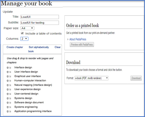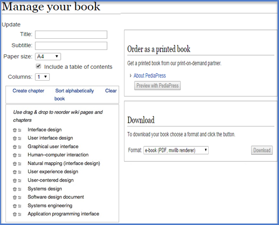 要將您的書籍列印成物理書籍,請從維基百科中使用“PediaPress”選項。