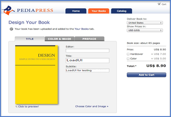 如果您對預覽滿意,那麼您可以選擇將書籍傳送到哪裡。在這裡,您還可以選擇精裝本和彩色選項,每個選項都會產生額外的費用。