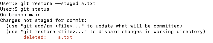 使用 restore 命令取消暫存已刪除的檔案