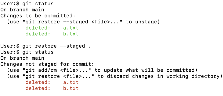 - git restore --staged .