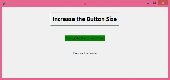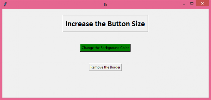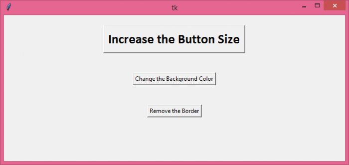 我們可以透過多種方式更新 Tkinter 中的 Button 小元件,例如,我們可以更改其大小、更改其背景顏色或刪除其邊框等。在以下示例中,我們將建立三個 Button 小組建,每個按鈕在單擊時都會呼叫不同的函式來更新其功能。