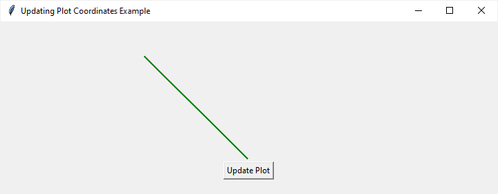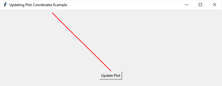 在此示例中,當按下“更新繪圖”按鈕時,會呼叫 update_plot 函式。它利用 canvas.coords 修改線條的座標,有效地更新了繪圖。此外,canvas.itemconfig 用於更改線條的顏色。