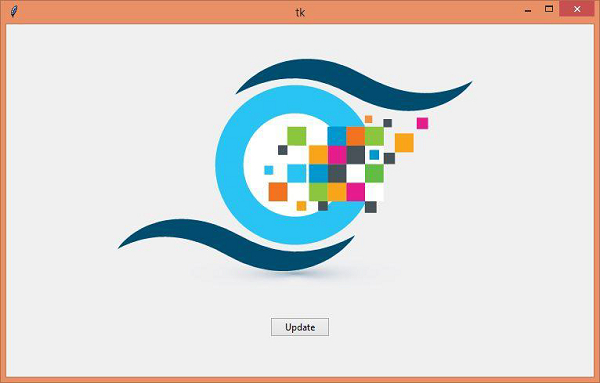 執行上面的程式碼,將顯示包含影像的標籤的視窗。當我們單擊“更新”按鈕時,標籤影像將得到更新。