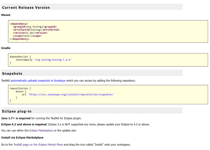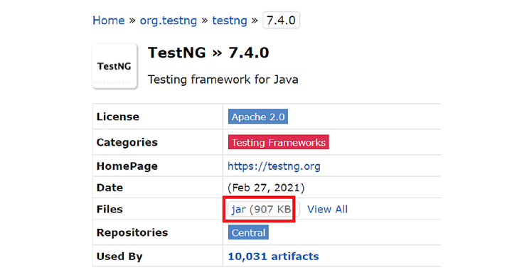 以下步驟應遵循以下載最新/特定版本的 TestNG jar。