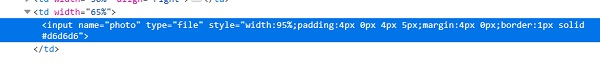 當我們嘗試上傳時,我們將單擊瀏覽按鈕。如果我們調查其 HTML 程式碼,我們將能夠找到值 file 的屬性 type。此外,要上傳的檔案路徑應準確。