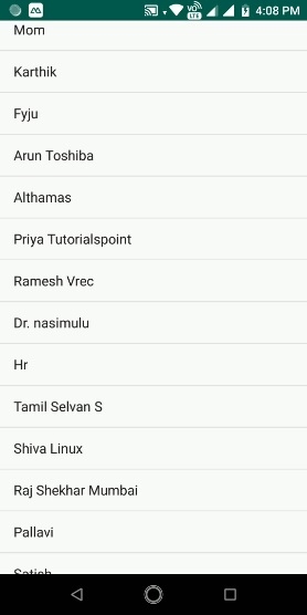 在上面的程式碼中,我們使用 listview 來顯示聯絡人姓名。