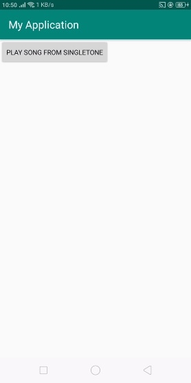 <?xml version = "1.0" encoding = "utf-8"?> <LinearLayout xmlns:android = "http://schemas.android.com/apk/res/android" xmlns:tools = "http://schemas.android.com/tools" android:layout_width = "match_parent" android:layout_height = "match_parent" tools:context = ".MainActivity" android:orientation = "vertical"> <Button android:id = "@+id/show" android:text = "Play song from singleTone" android:layout_width = "wrap_content" android:layout_height = "wrap_content" /> </LinearLayout>