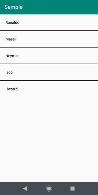 <?xml version="1.0" encoding="utf-8"?> <RelativeLayout xmlns:android="http://schemas.android.com/apk/res/android" xmlns:tools="http://schemas.android.com/tools" android:layout_width="match_parent" android:layout_height="match_parent" tools:context=".MainActivity"> <ListView android:id="@+id/simpleListView" android:layout_width="match_parent" android:layout_height="wrap_content" android:divider="#000" android:dividerHeight="2dp"/> </RelativeLayout>