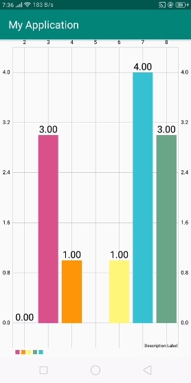 package com.example.andy.myapplication; import android.graphics.Color; import android.os.Bundle; import android.support.v7.app.AppCompatActivity; import com.github.mikephil.charting.charts.BarChart; import com.github.mikephil.charting.data.BarData; import com.github.mikephil.charting.data.BarDataSet; import com.github.mikephil.charting.data.BarEntry; import com.github.mikephil.charting.utils.ColorTemplate; import java.util.ArrayList; public class MainActivity extends AppCompatActivity { BarChart barChart; BarData barData; BarDataSet barDataSet; ArrayList barEntries; @Override protected void onCreate(Bundle savedInstanceState) { super.onCreate(savedInstanceState); setContentView(R.layout.activity_main); barChart = findViewById(R.id.BarChart); getEntries(); barDataSet = new BarDataSet(barEntries, ""); barData = new BarData(barDataSet); barChart.setData(barData); barDataSet.setColors(ColorTemplate.JOYFUL_COLORS); barDataSet.setValueTextColor(Color.BLACK); barDataSet.setValueTextSize(18f); } private void getEntries() { barEntries = new ArrayList<>(); barEntries.add(new BarEntry(2f, 0)); barEntries.add(new BarEntry(4f, 1)); barEntries.add(new BarEntry(6f, 1)); barEntries.add(new BarEntry(8f, 3)); barEntries.add(new BarEntry(7f, 4)); barEntries.add(new BarEntry(3f, 3)); } }