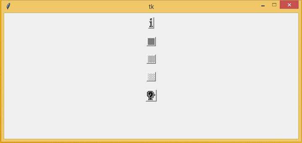 Button(win, relief=RAISED, bitmap="gray12").pack(pady=10)