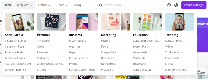 Canva的介面使訪問您需要的任何內容變得更容易。以下是一些您可以訪問和使用模板的方法。