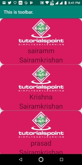 本示例演示瞭如何在 recyclerview 中使用 cardview