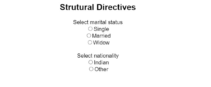 結構指令用於更改 DOM 元素的設計模式。使用這些指令,我們可以重新設計和重新裝飾 DOM 元素。我們可以使用結構指令來操作和構建 DOM。內建指令例如 ngIf、ngFor 和 ngSwitch。