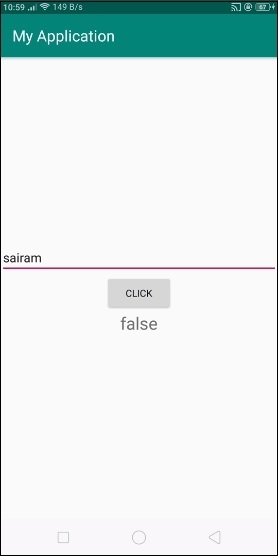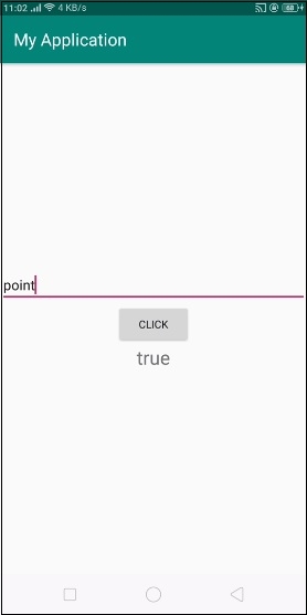 在上面的程式碼中,我們使用了名為name的EditText,當用戶點選按鈕時,它將獲取資料並檢查給定的字串是否包含“point”。