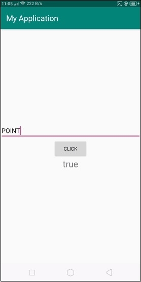 在上面的程式碼中,我們使用了名稱作為編輯文字,當用戶點選按鈕時,它將獲取資料並檢查給定的字串是否包含“point”。
