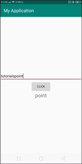 在上面的程式碼中,我們使用EditText作為名稱輸入框,當用戶點選按鈕時,它將獲取資料並返回從字串第9個字元到字串結尾的字元。