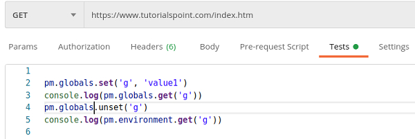 pm.globals.unset('g')) console.log(pm.globals.get('g'))