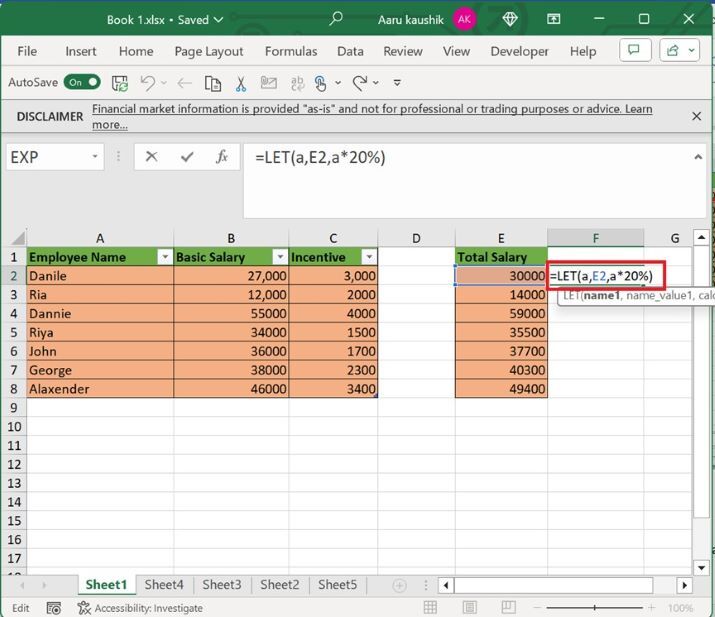 我們可以利用 LET 函式的功能來快速評估數學計算。Excel 的適應性使我們能夠將這些公式用於不同的情況,並保證分析的準確性。它使公式更易於閱讀,並可以幫助讀者更簡潔地理解它。變數在公式內宣告,LET 函式是唯一可以使用它們的地方。