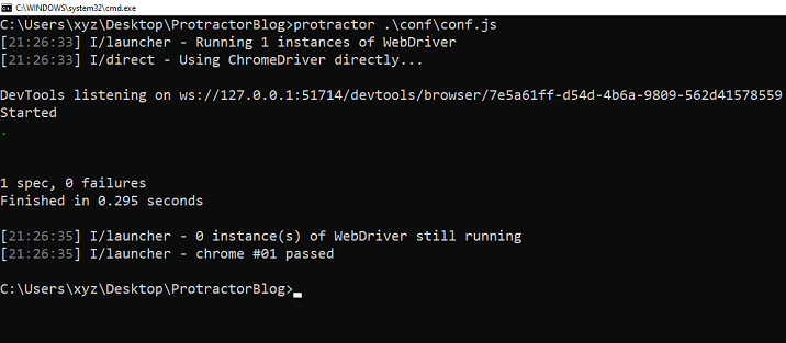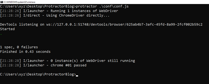 注意 - 要使用 Protractor,請確保已完成 Protractor 的安裝和設定。使用者可能需要將執行策略設定為“RemoteSigned”