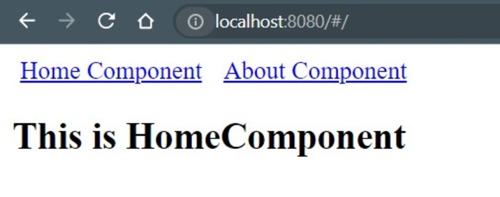 <template> <div> <div> <router-link to="/" class="link">Home Component</router-link> <router-link to="/about" class="link">About Component</router-link> </div> <router-view /> </div> </template> <script> export default { name: 'App' } </script> <style> .link{ padding: 5px; color: blue; } </style>